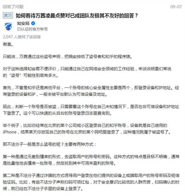 隨后,知乎方面表示,是因為萬茜的 163 郵箱被盜導致知乎賬號被盜,知乎賬號被盜號概率較低,知乎賬號安全值得信賴。