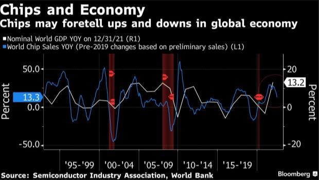 近幾十年來,芯片銷量的季度增長情況與全球經濟表現息息相關。最新的疲軟正值對全球經濟衰退擔憂加劇之際,這促使三星電子等芯片制造商考慮縮減投資計劃。